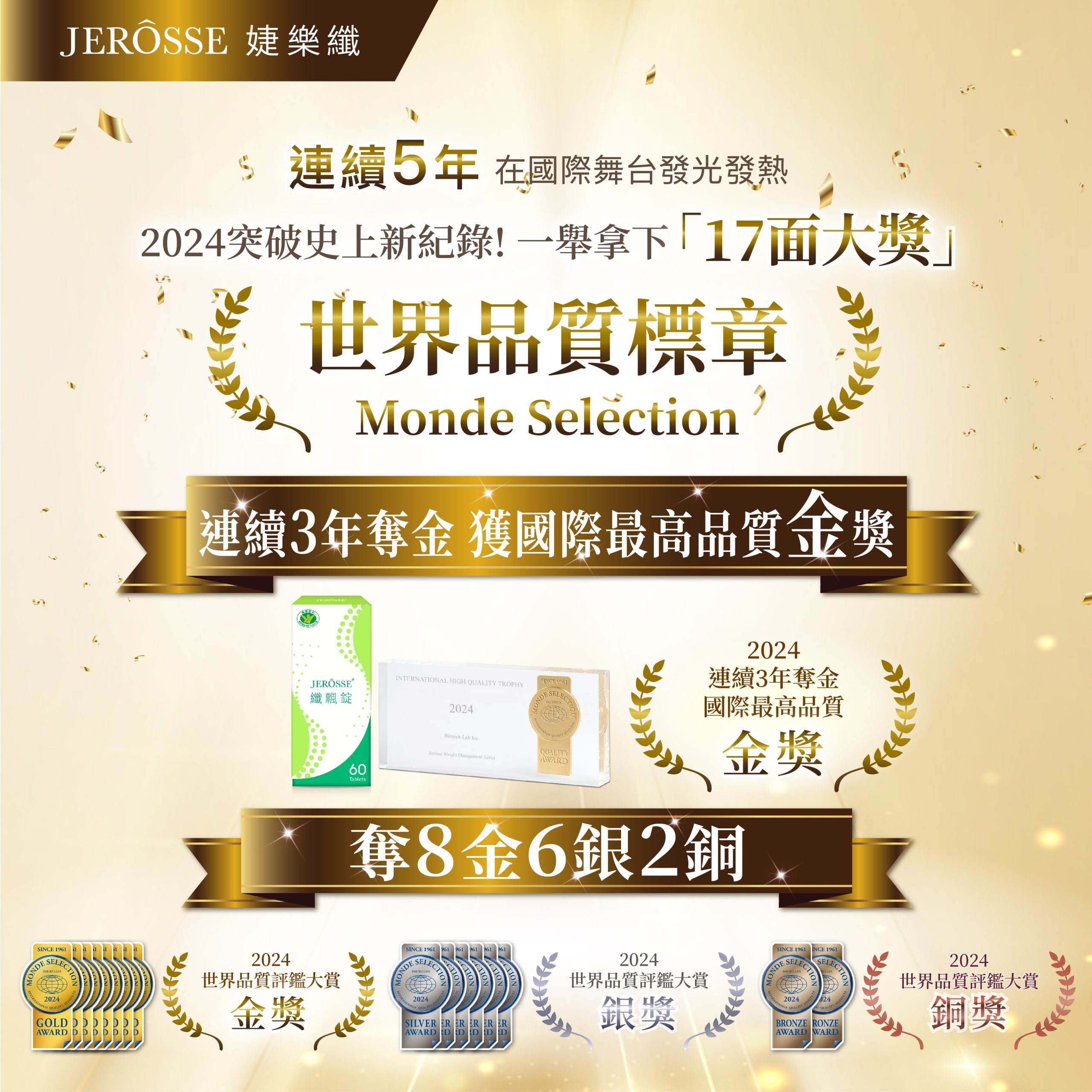 ▲2024年婕樂纖橫掃世界品質標章17座獎項 在食安問題層出不窮的關鍵時刻,民眾時時刻刻在意品牌方要秉持良心,嚴謹把關,維持品質,保障民眾的健康安全。台灣生技之光-婕樂纖從2018-2023這六年來,在產品品質上累績超...