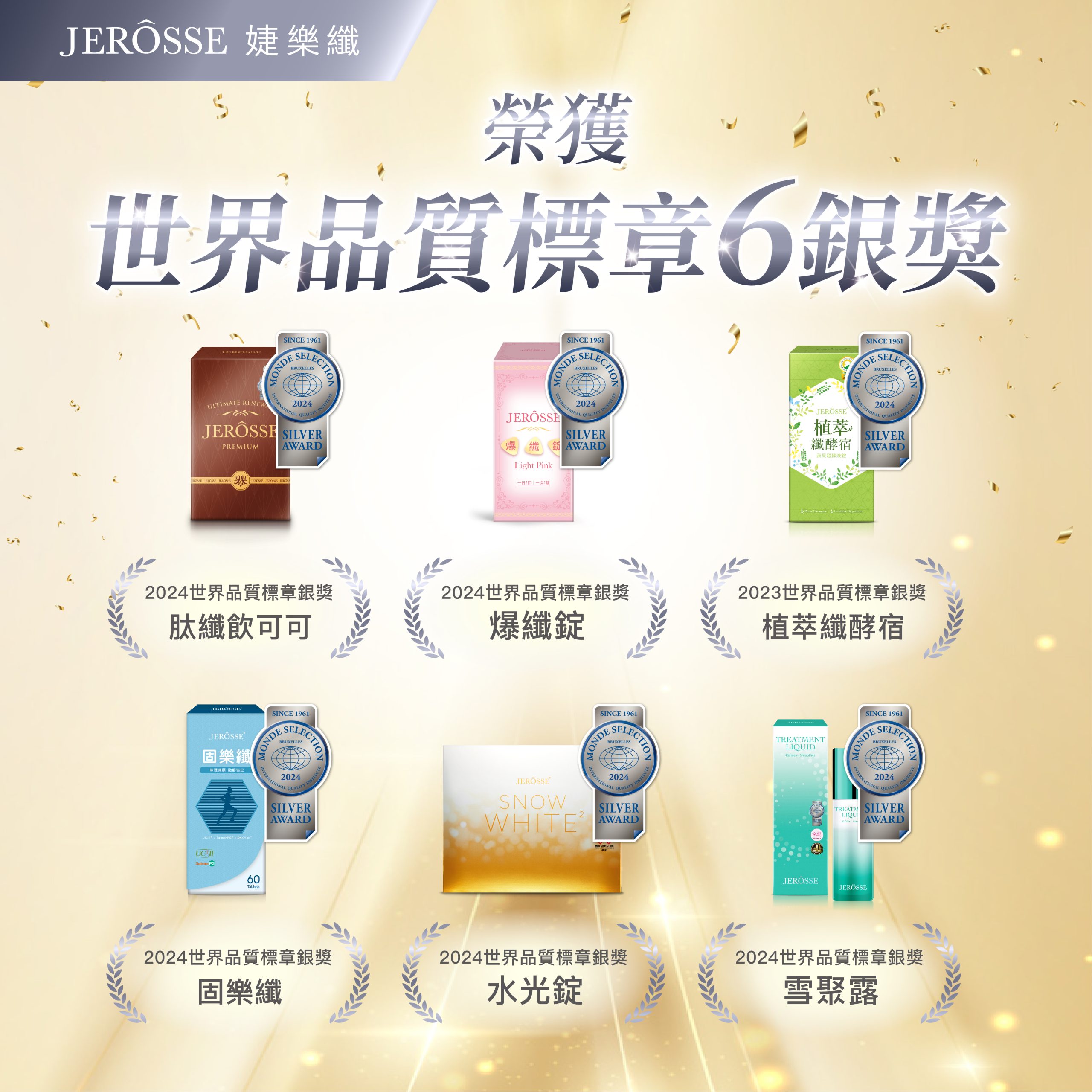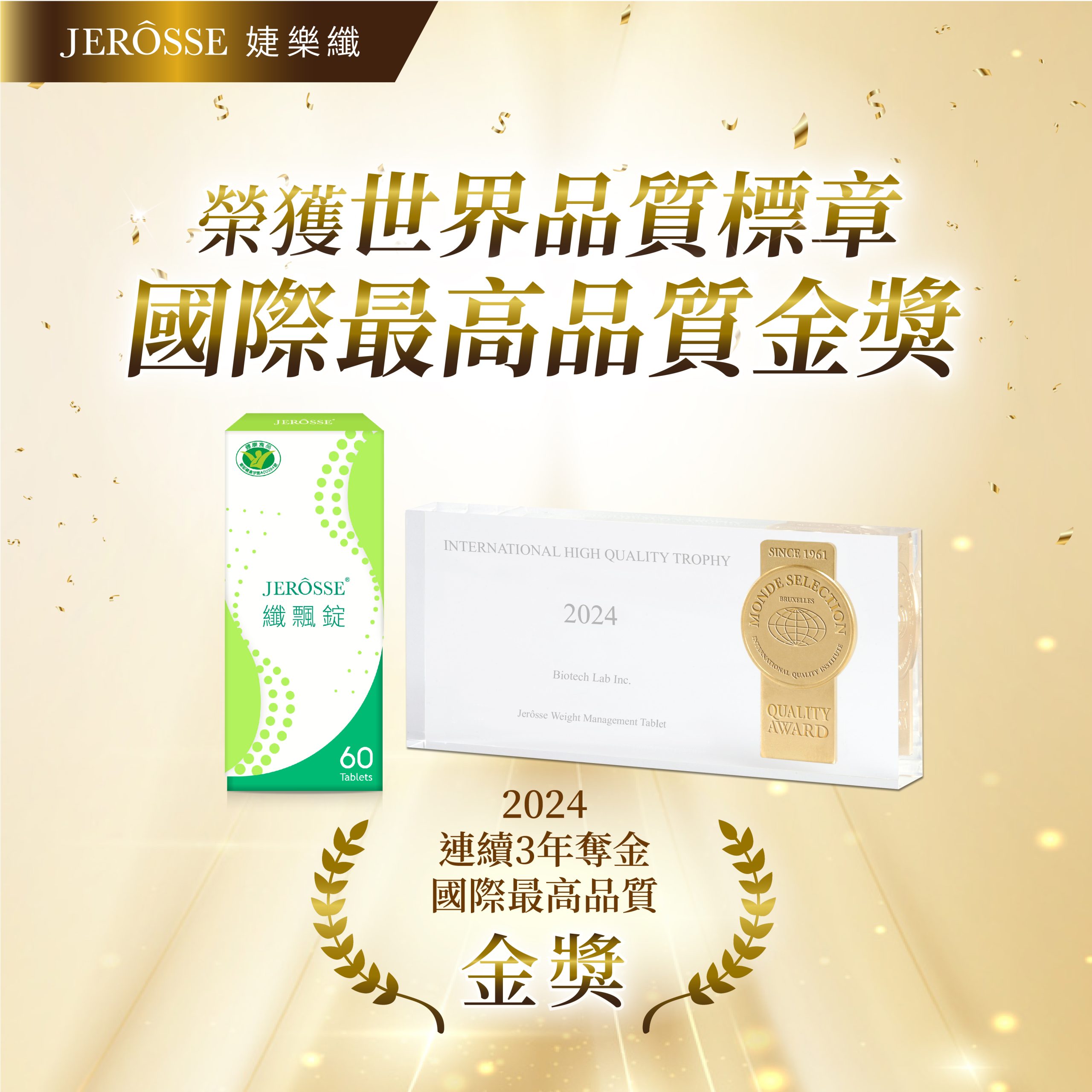 在食安問題層出不窮的關鍵時刻,民眾時時刻刻在意品牌方要秉持良心,嚴謹把關,維持品質,保障民眾的健康安全。台灣生技之光-婕樂纖從2018-2023這六年來,在產品品質上累績超過上百座獎項,包含國家品牌玉山獎、國家品質標章SNQ、台灣品質金像獎、台灣品質金像獎、世界品質標章等多項品質殊榮,更於今年再次參與世界品質標章,獲得超過 70 位國際級頂尖專家學者的各方肯定,橫掃17面大獎,堪稱為業界典範,而榮獲雙健字號的纖飄錠連續三年獲得金獎,額外頒贈『國際最高品質金獎』,彰顯出婕樂纖追求卓越與不斷超越的精神,讓台灣長期被世界看見。