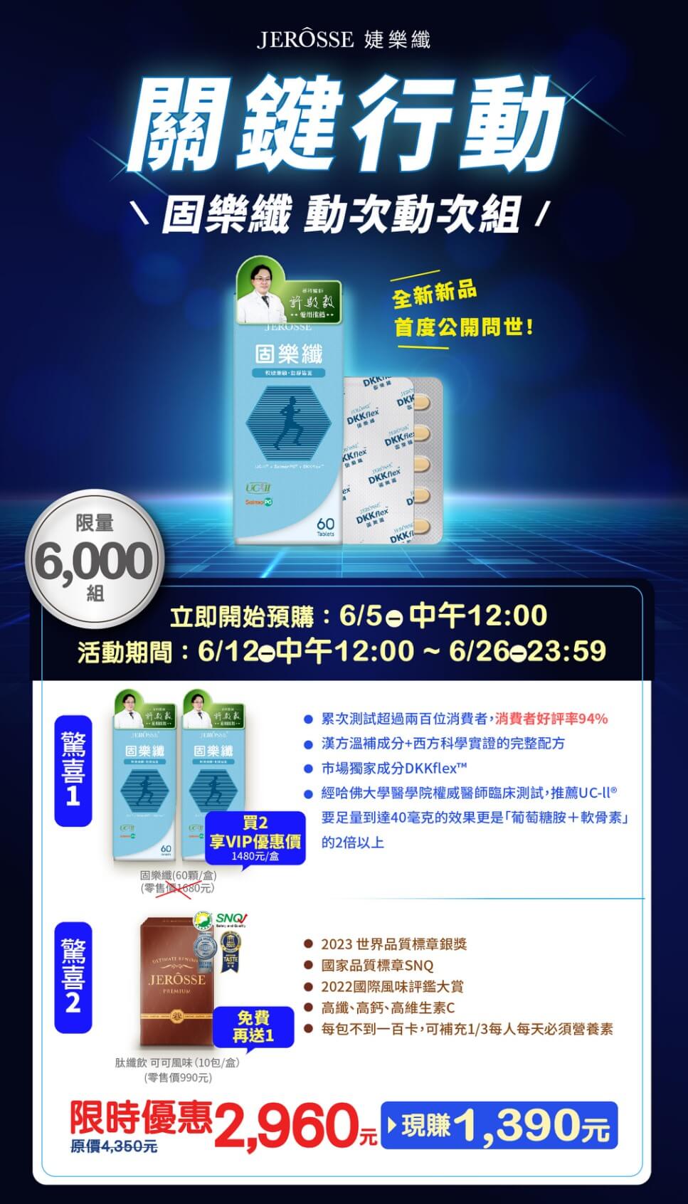 『活動A:靈活頂叩叩組』 購買新品固樂纖 2盒,破例享有VIP優惠價, 額外贈送:肽纖飲 可可風味1盒 (市價990元) ◆原價4,350元 ◆限時優惠VIP價2,960 元,現賺$1,390元 『活動B:美麗緊繃繃組』 購買水光繃帶面膜...