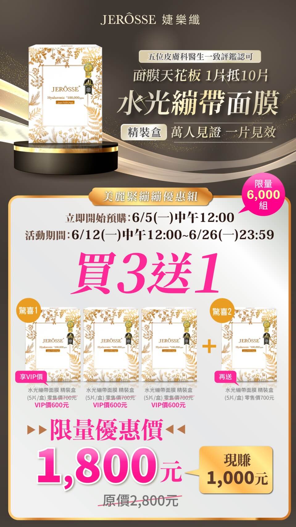 購買水光繃帶面膜 3盒(5片/盒)享有VIP優惠價600元