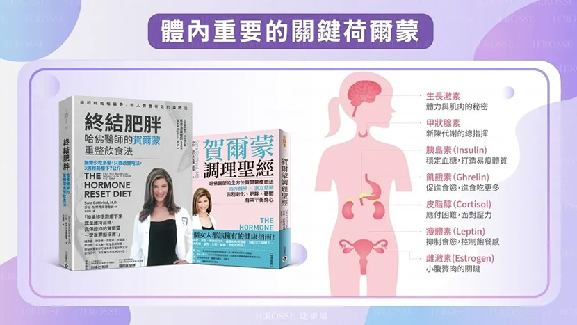 如果三餐不正常、熬夜、生活壓力大,容易導致荷爾蒙失衡。莎拉醫師認為要調整體內的荷爾蒙失衡,除了要改變生活作息、規律運動之外,更要搭配「正確飲食方式」,掌握平衡荷爾蒙的密碼;婕樂纖營養師群參考莎拉醫師的專業內容與相關科學文獻,提出一套更符合現代人的方式─婕樂纖線上纖體班,獨創科學體控方式,由專業營養師親自輔導,減重不用餓肚子,輔助調整正常生理功能與代謝,讓參加的學員從健康的飲食調整法中,找回健康自信。